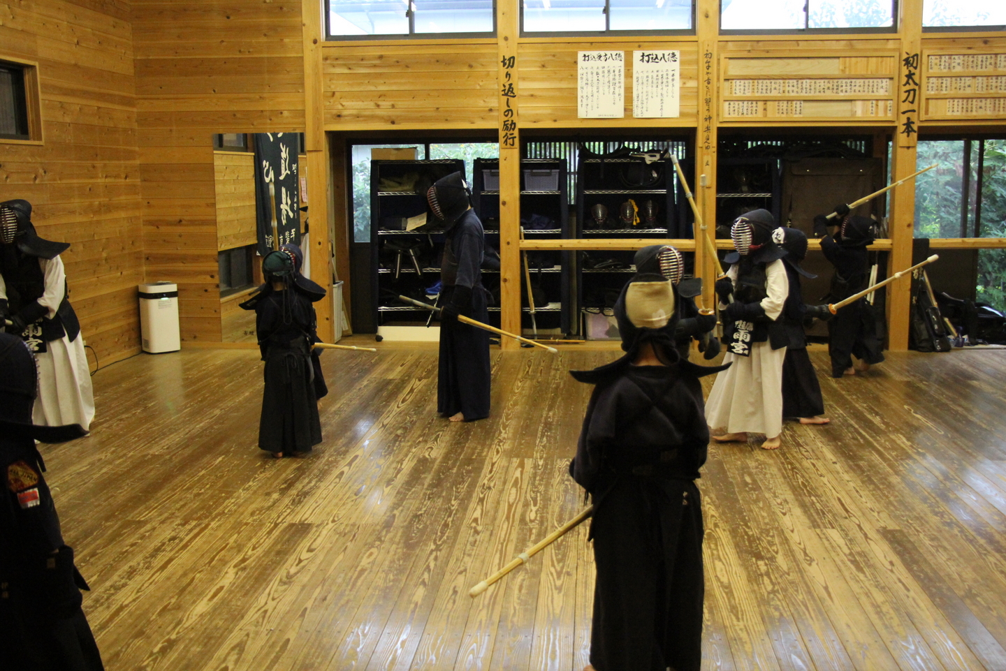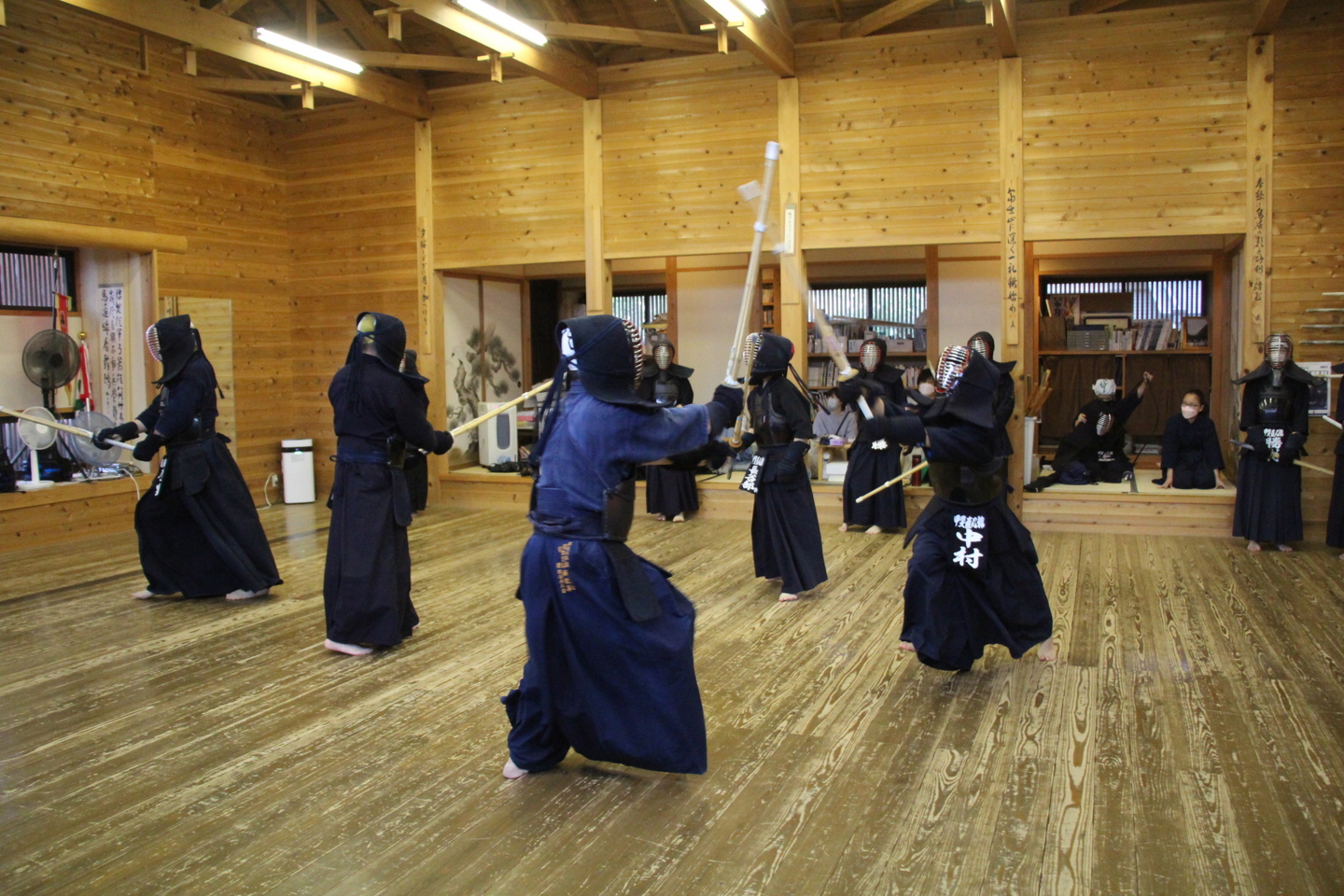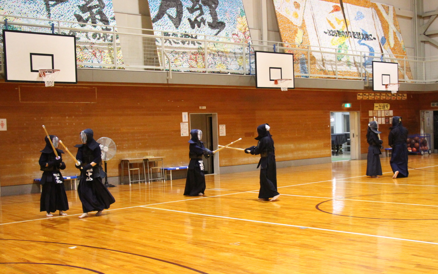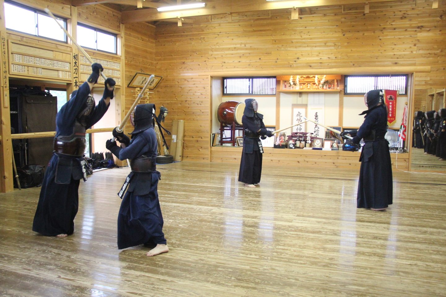 8種類の素振り200本を行い、全員で日本剣道形を修錬しました。日本剣道形を初めて学ぶ中学生は、木刀による剣道基本技稽古法で覚えた木刀の扱いや所作を大切にしながら学んでほしいと思います。日本剣道形は古流の粋(すい)を集めたもので、現代剣道でも根幹を成すものです。昇段審査のためのものでなく、真剣に学んでほしいと思います。