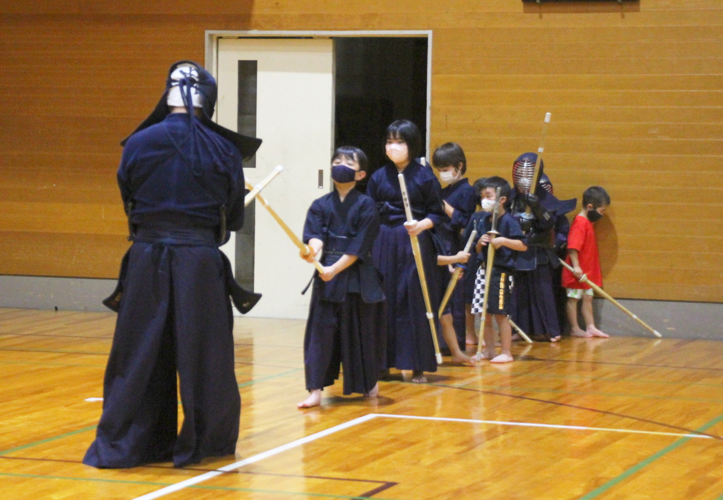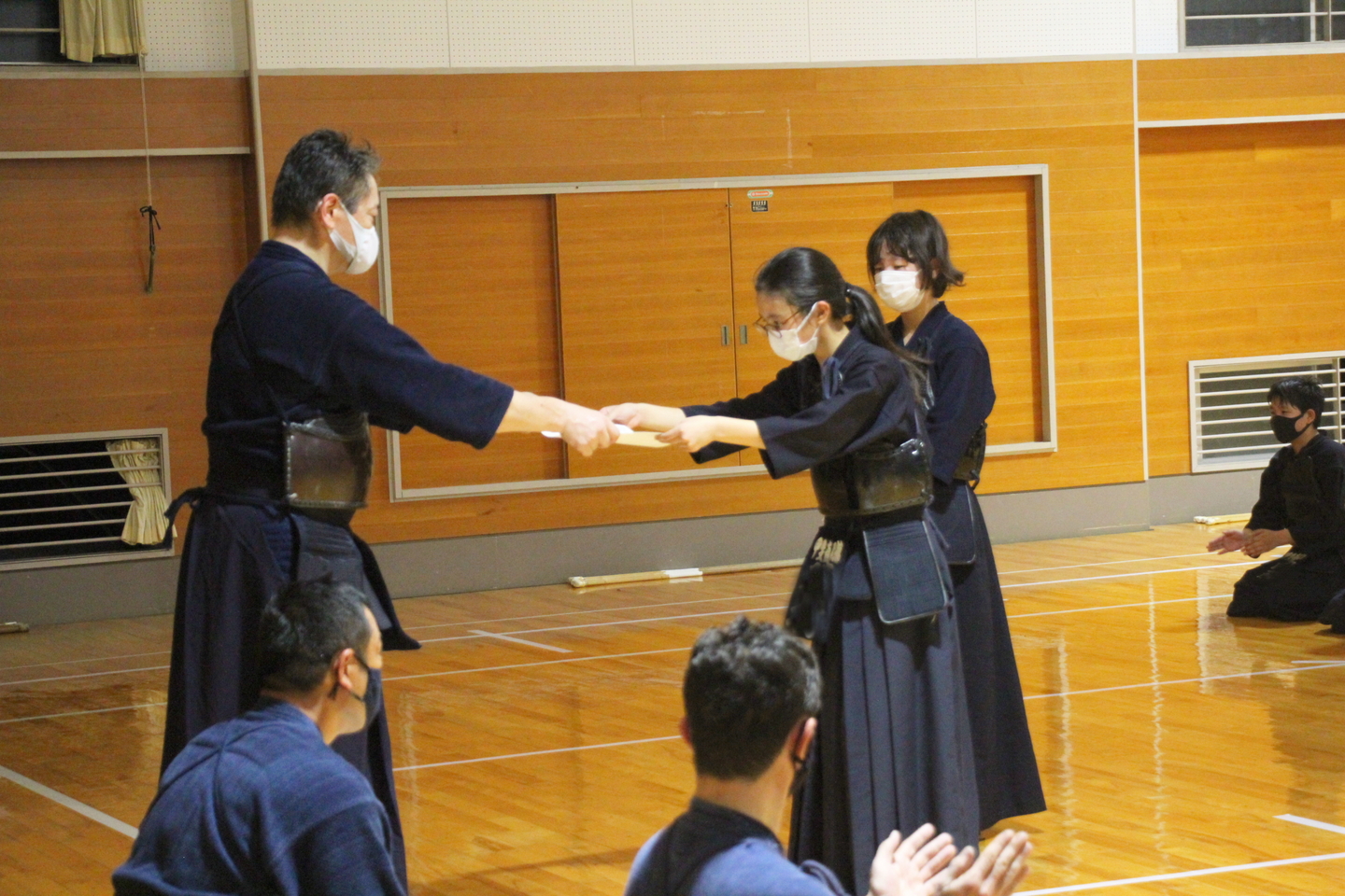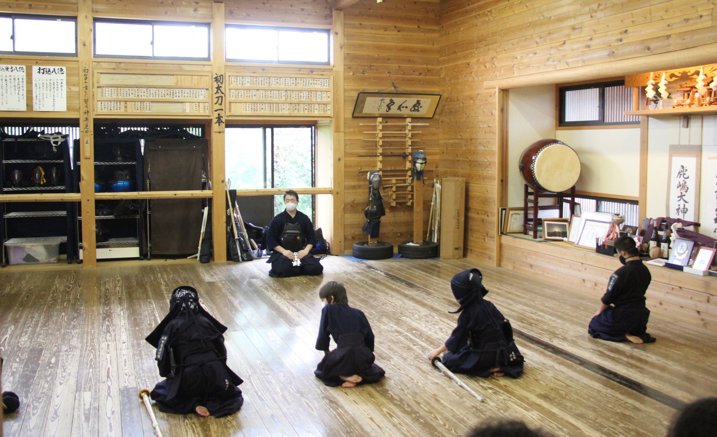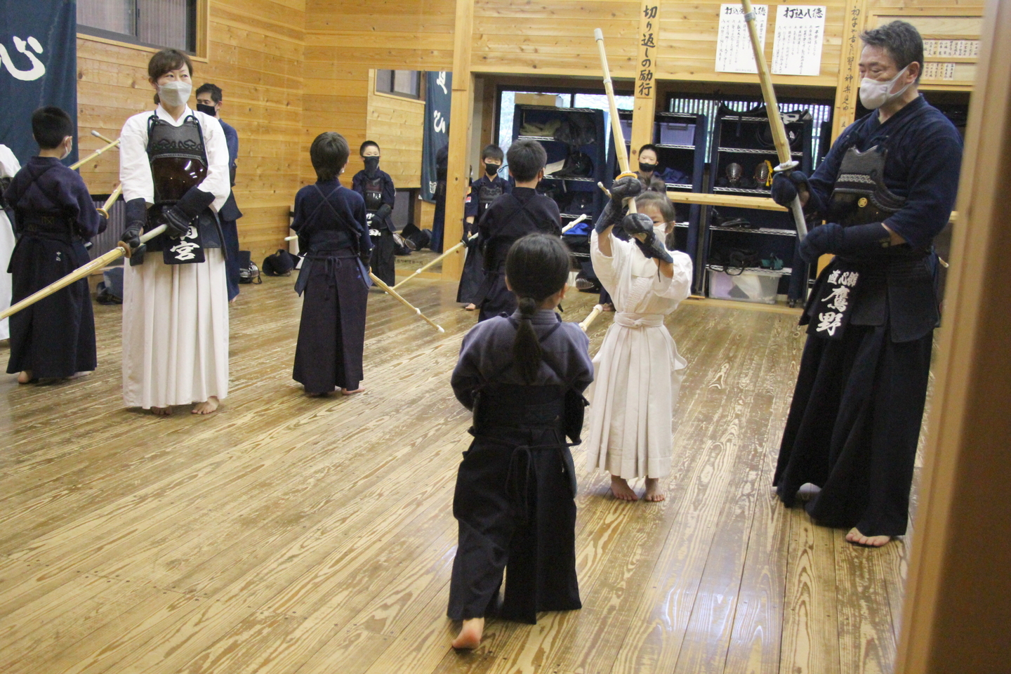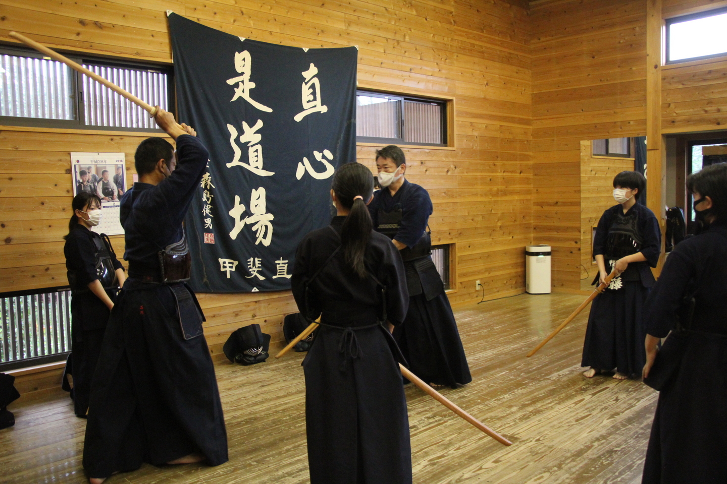8種類の素振り200本を行い、全員で日本剣道形を修錬しました。日本剣道形を初めて学ぶ中学生は、木刀による剣道基本技稽古法で覚えた木刀の扱いや所作を大切にしながら学んでほしいと思います。日本剣道形は古流の粋(すい)を集めたもので、現代剣道でも根幹を成すものです。昇段審査のためのものでなく、真剣に学んでほしいと思います。