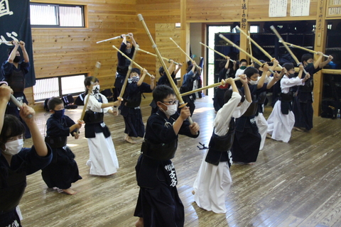 毎回の検温カード提出を継続します。道場内、体育館等では手指消毒の徹底と面マスクを必ず着用してください。熱中症の恐れが高い季節ですので、稽古に適したマスクを着用するようにしてください。面を着けて連続30分間以上の稽古はしないようにします。剣道具の貸し借りも避けます。