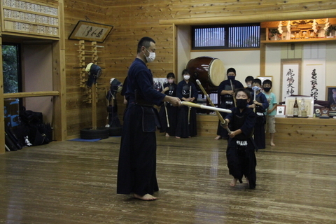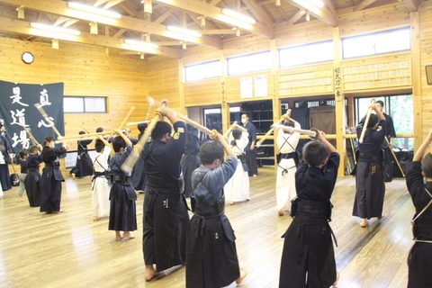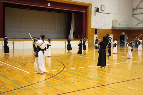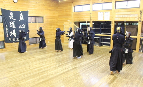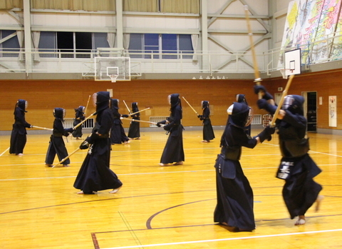本来は形稽古から竹刀稽古に入るのが順番ですが、時間前に上がる館生もいたので、この日は先に面を着けました。