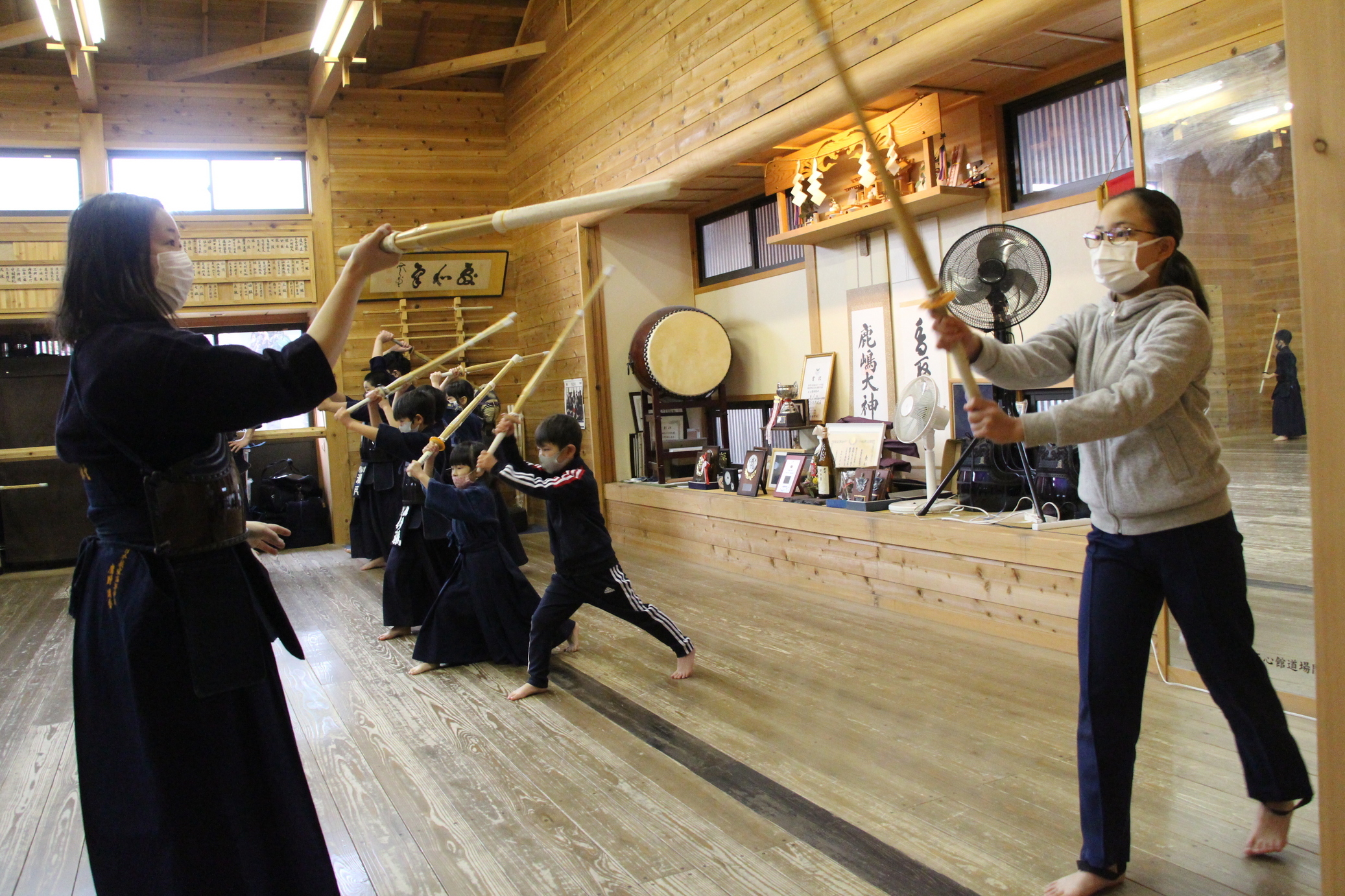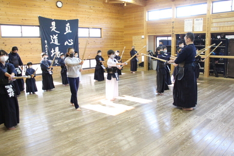 甲斐直心館の令和2年度の納めとなる朝稽古を3月27日、甲斐直心館道場で行いました。久しぶりにひんやりとした朝となりました。午前5時50分現在の道場内の室温は8度、湿度は50%でした。中学生以上の部、小学生以下の部に計30人超が参加しました。