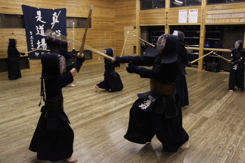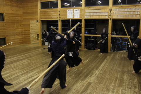 面着け後は面の打ち込み5本からの2往復切り返しを3セット行い、小手体当たり、小手面打ち、相面、指導者3人も一緒に入って地稽古をしました。