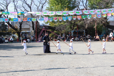 小学生の部の号令は小4鶴田君。正座の後、久々に14種類の素振りをしました。稽古時間を短縮したことに伴い、最近は6〜7種類の素振りに限定していますが、やはり甲斐直心館の稽古の理想は14種類の素振りをすることだと感じました。左右面の大素振り、前後右左の足さばきの正面素振り、同左右面素振り、右手の片手素振り、腰割り(股割り)素振り、蹲踞素振り、左右面の跳躍素振りなどは崩れない剣道をするためには有益だと確信しますので、各自、自主的に補ってほしいものです。