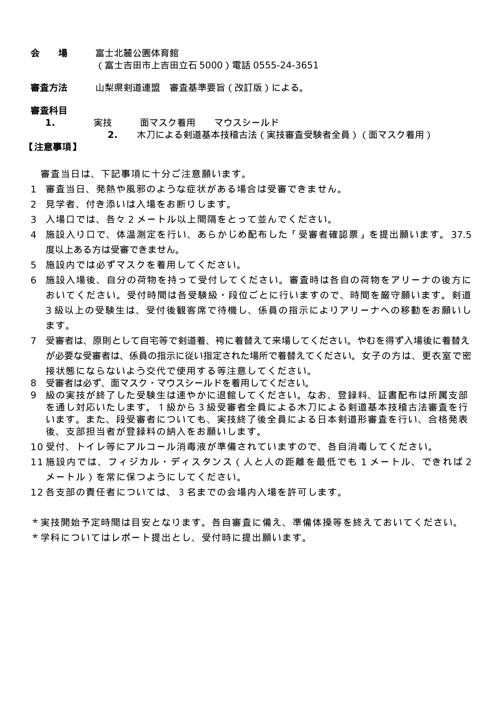 次回、自主強化稽古を11月2日(月)19時〜20時、玉幡中学校で行います。内容は試合稽古、指導者元立ちによる掛かり稽古などです。水曜稽古は11月5日(水)19時〜20時30分、玉幡中学校で行い、11月7日(土)は県中学校新人大会のため朝稽古はお休みとし、夕方の伝統文化剣道教室を17時30分〜19時、11月8日(日)早朝に竜王小グラウンドで甲斐直心館スポーツテストを実施します。