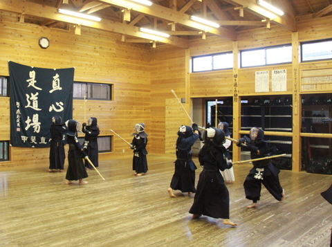 10月24日の甲斐直心館朝稽古には館生、指導者ら合わせて約20人が参加しました。午前5時30分現在の道場内室温は14度、湿度70%でした。