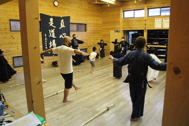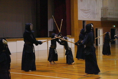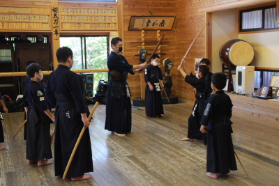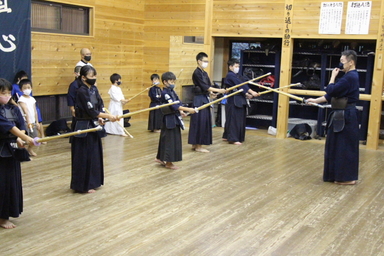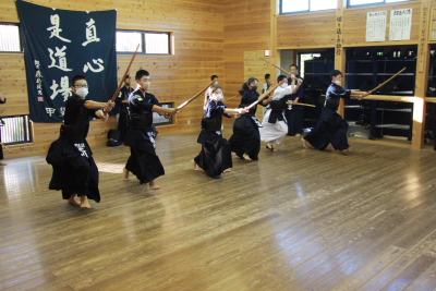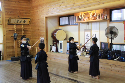 8時からは武道場で木刀による剣道基本技稽古法を中学生、小学生に分かれて修錬して稽古を終わりました。