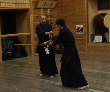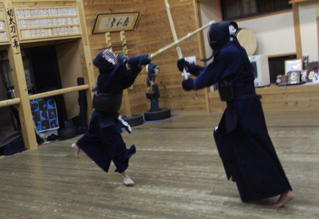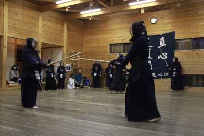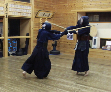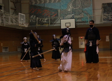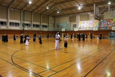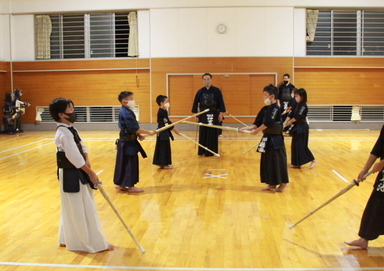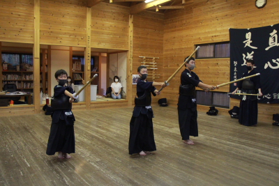 | 3級 | 面を着装し、元立ちに対し、切り返し(正面打ち⇒前進4本、後退5本、正面打ち⇒正面打ち)(立礼、三歩進み、構え 終了時 納刀五歩後退、立礼) |
