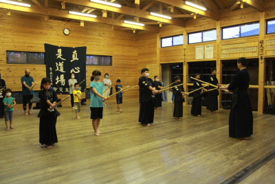 | 5級 | 面を着装し、元立ちに対し、正面打ちを4本(立礼、三歩進み、構え 終了時 納刀五歩後退、立礼) | | | | | |