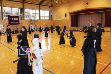 剣道部会は受付・放送係 直心館団員9人、指導者・保護者11人参加