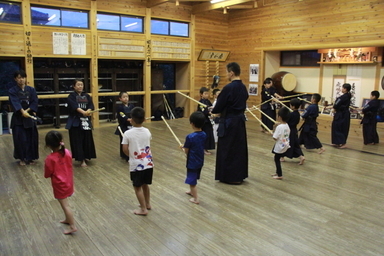 | 伝統文化親子教室事業の第7回甲斐市親子剣道教室を8月24日開いたところ、30人が参加してくれました。今年の教室としては初めて、剣道基本技稽古法を基本3まで全員が体験し、一歩前進しました。