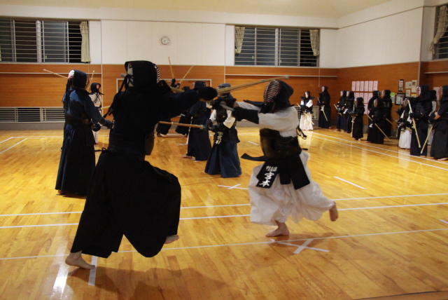 面打ちのみの3本先取の試合稽古を行ったところ、長谷部君が9戦全勝。相手に一本も許さない完勝でした。