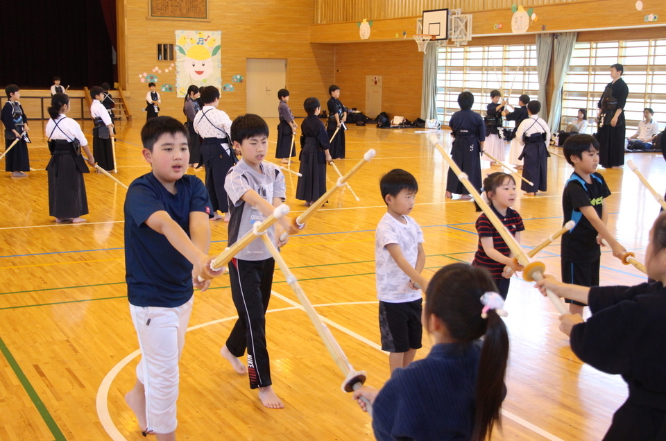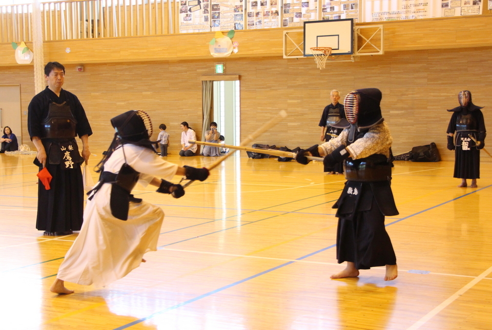 甲斐直心館は第3回からお招きをいただき、楽しい機会をいただいています。高根剣道の皆さまからは飲み物の差し入れをいただき、石原宮司からは奥様の友禅染によるという貴重な日本手ぬぐいを選手に贈っていただきました。
