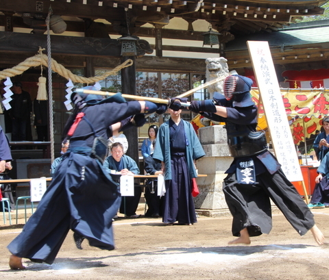 | 第9回建部神社奉納剣道大会が4月29日、北杜市高根町の同神社(石原貞夫宮司)境内で行われ、山梨、長野の4団体から約60人の選手が出場して、小学校低学年、小学校高学年、中学生女子、中学生男子の4部門で個人戦に熱戦を繰り広げました。