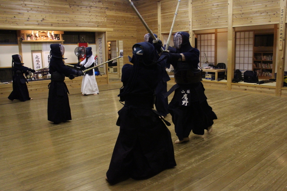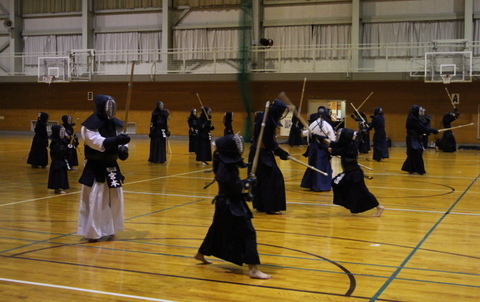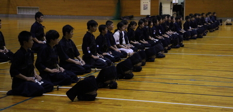 面着け後は30分。切り返し、面打ち、小手打ち、小手面打ちを行い、面に対する胴打ち、面に対する応じ技、小手に対する応じ技などを行いました。応じ技の後の相手への備えを忘れないこと、それが残心です。