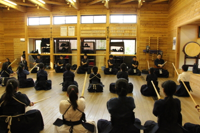 | 甲斐直心館は5月18日、玉幡中学校武道場で水曜夜の通常稽古を行いました。甲府の昼の最高気温が29度を超える暑い一日でした。館生には稽古の前後、休憩中に水分補給を忘れないよう呼び掛けました。