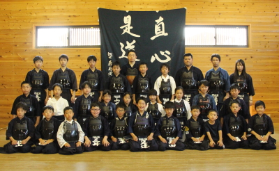 準備体操、足さばきと正面素振り、左右面素振りを行い、2列になって前進の送り足、後退の足さばきを行い、前進の正面素振り、小手面素振りを行いました。途中、4年生と中1生にお手本の素振りをしてもらいました。振りかぶりで頭が揺れない館生を選びました。前半は跳躍素振り30本で締めました。