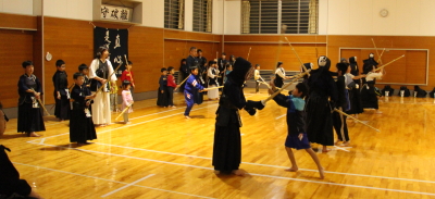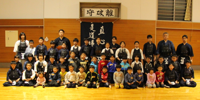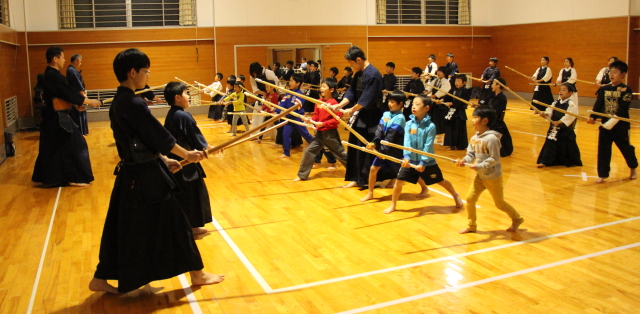 初めて竹刀を握る幼児、小学生も多かったのですが、送り足ののみ込みも早く、正面素振りも見よう見まねでできたのは驚きです。人の話を聞いて、すぐやってみようということができる素晴らしい子どもたちだと感じました。