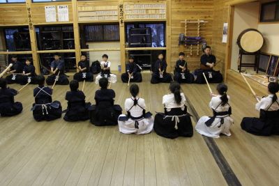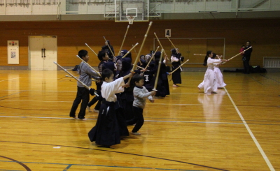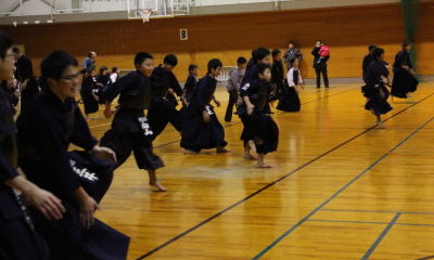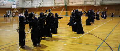稽古は中村団長の号令で蹲踞(そんきょ)素振りを含めた12種類の素振り20本ずつを行い、足さばきを十分に行ってから、面着けに入りました。切り返し、面打ち、小手面打ち、相面などを行い、地稽古、切り返しをして締めました。足さばきで後ろ側の足を引き付けることは大事なことですが、引き付けすぎないようにすることも大切です。