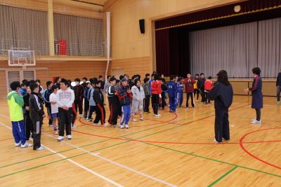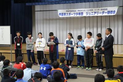 スポ少ジュニアリーダー研修会に参加する小学5年生は朝稽古のの後、北部公民館に向かいました。