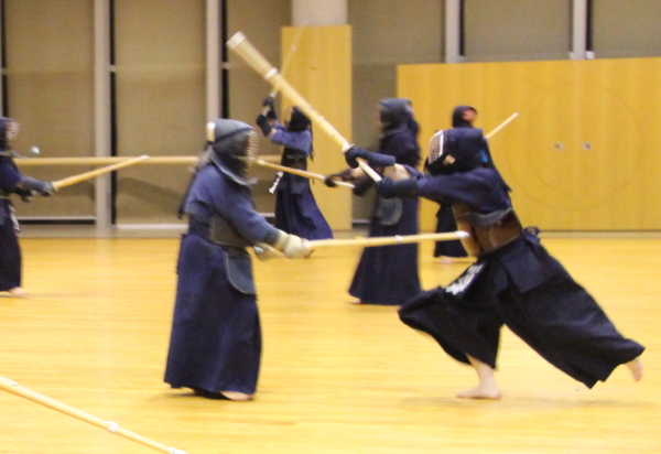 素振りは上下素振り、上下左右素振りを各30本、そのほかは正面素振り、小手素振り、左右面素振り、左右胴素振りをいつもより10本多く各60本振りました。ここでの素振りは一本一本打ち切る意識をより強く求められるため、腕に張りを覚えます。素振りは重要な稽古であることを再認識します。