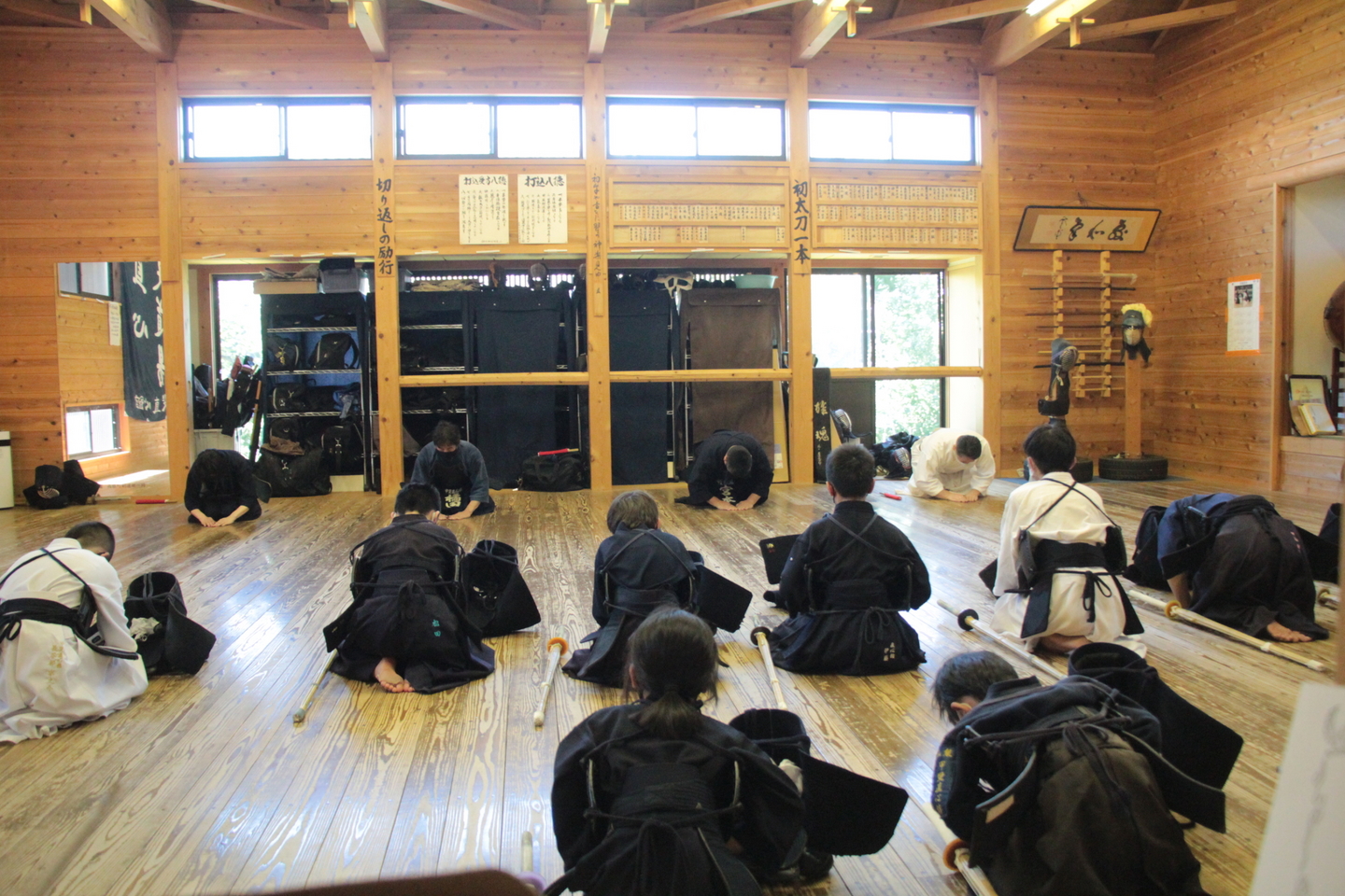 先日の本部審査会の結果を報告し、昇段昇級を拍手で祝いました。号令は中3望月楓さん。正座の後、準備体操、6級、7級の審査要領、跳躍面素振り20本を行いました。