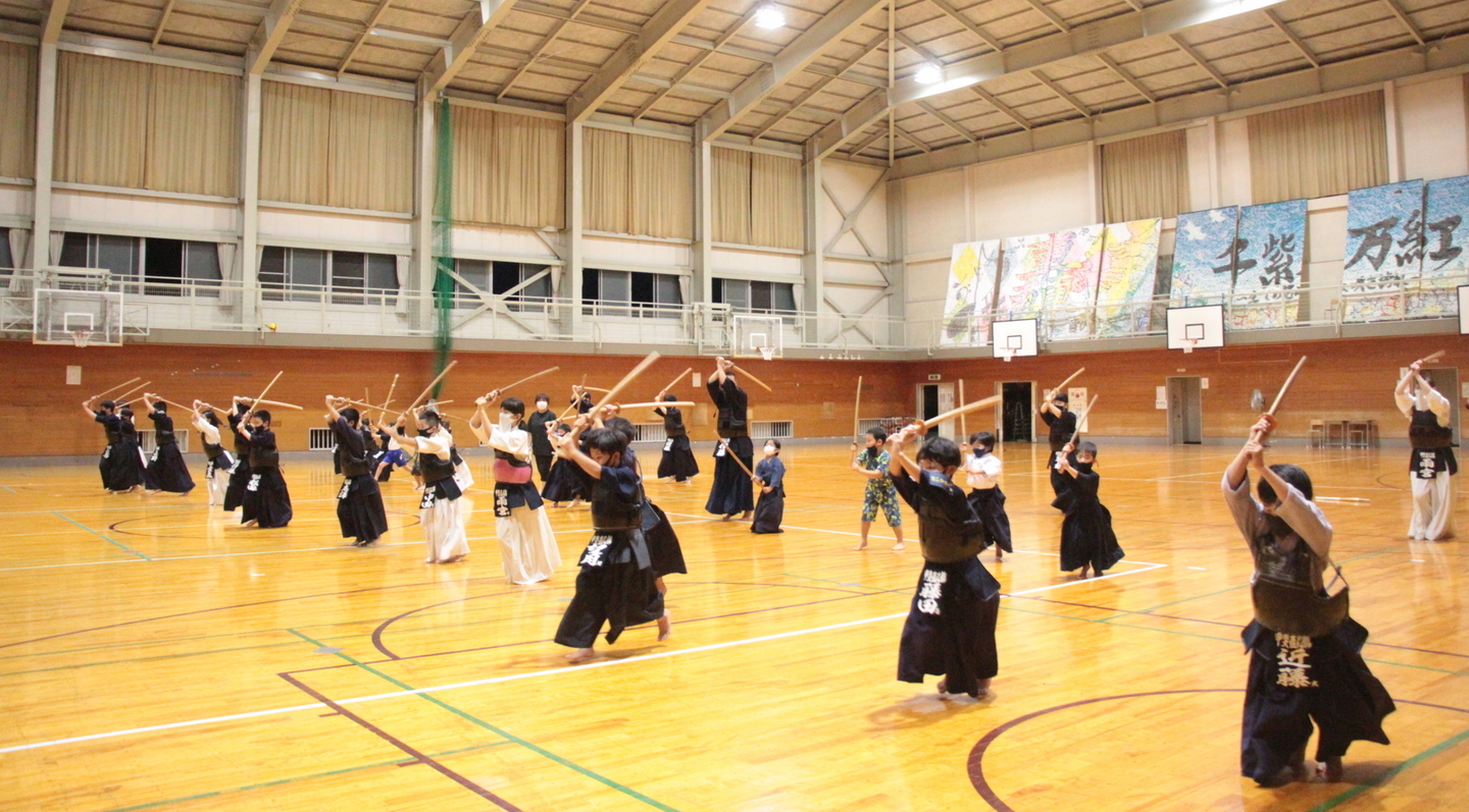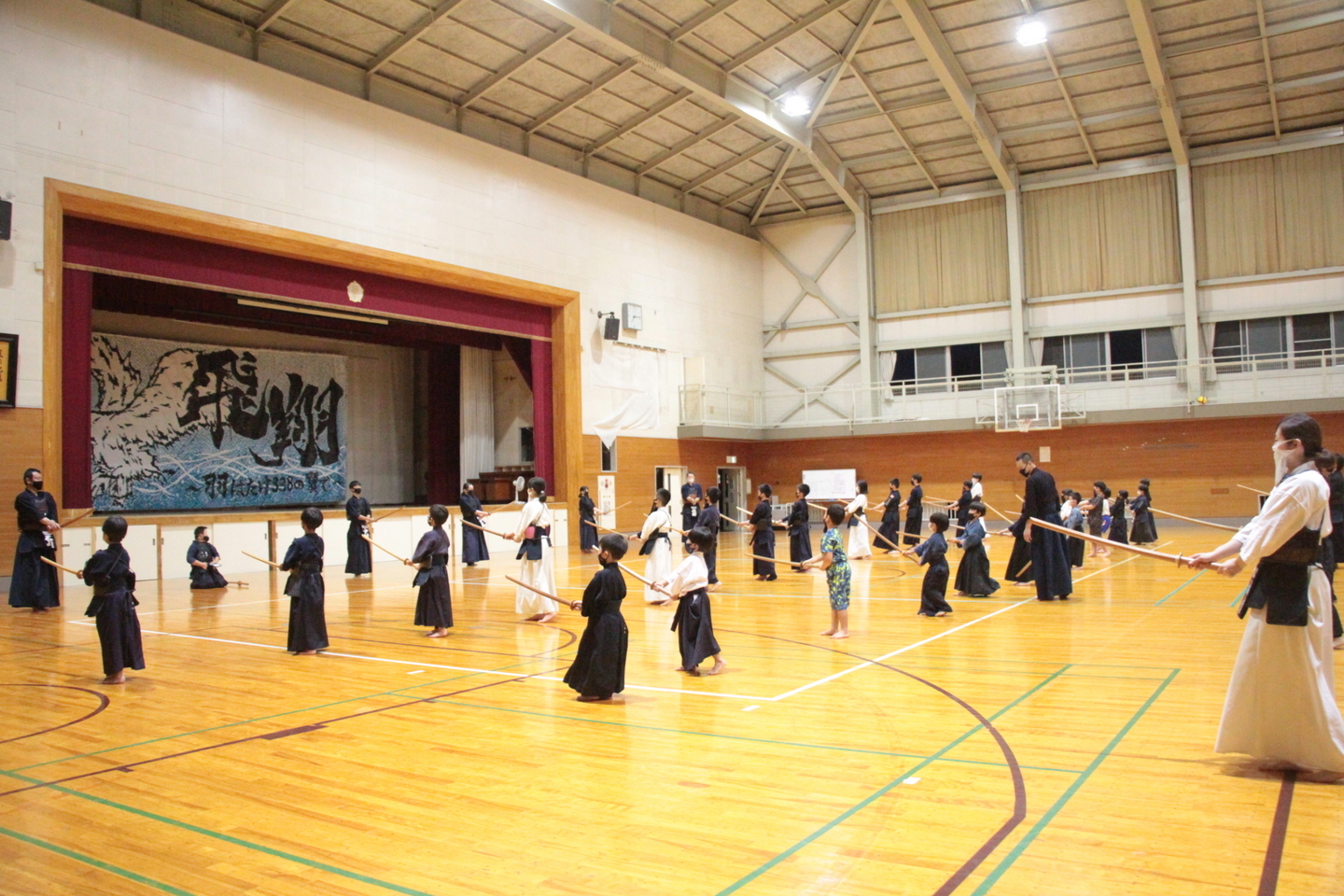 | 8月9日(水)の甲斐直心館通常稽古は玉幡中学校体育館で行いました。関東中学校剣道大会のため、指導者や館生ら10人弱が不在のため、いつもより参加者は少なかったものの43人が参加しました。