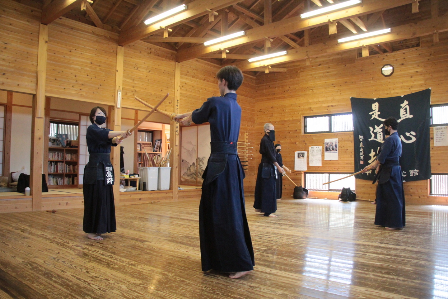 土曜または日曜に9:00〜10:00に外部からの参加者も交えて、一般稽古会を行っていますので、ご参加ください。内容は日本剣道形、面を着けての稽古です。