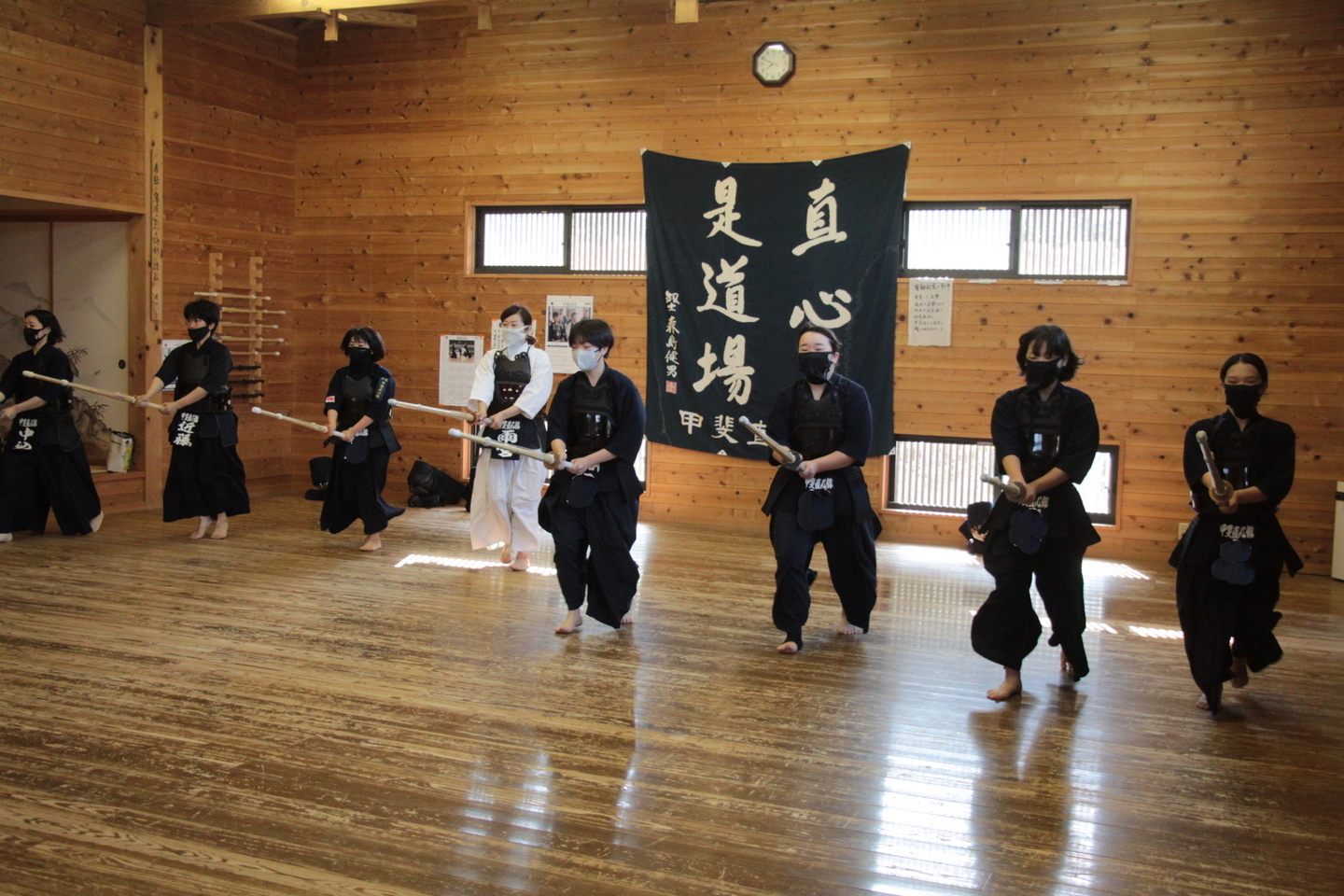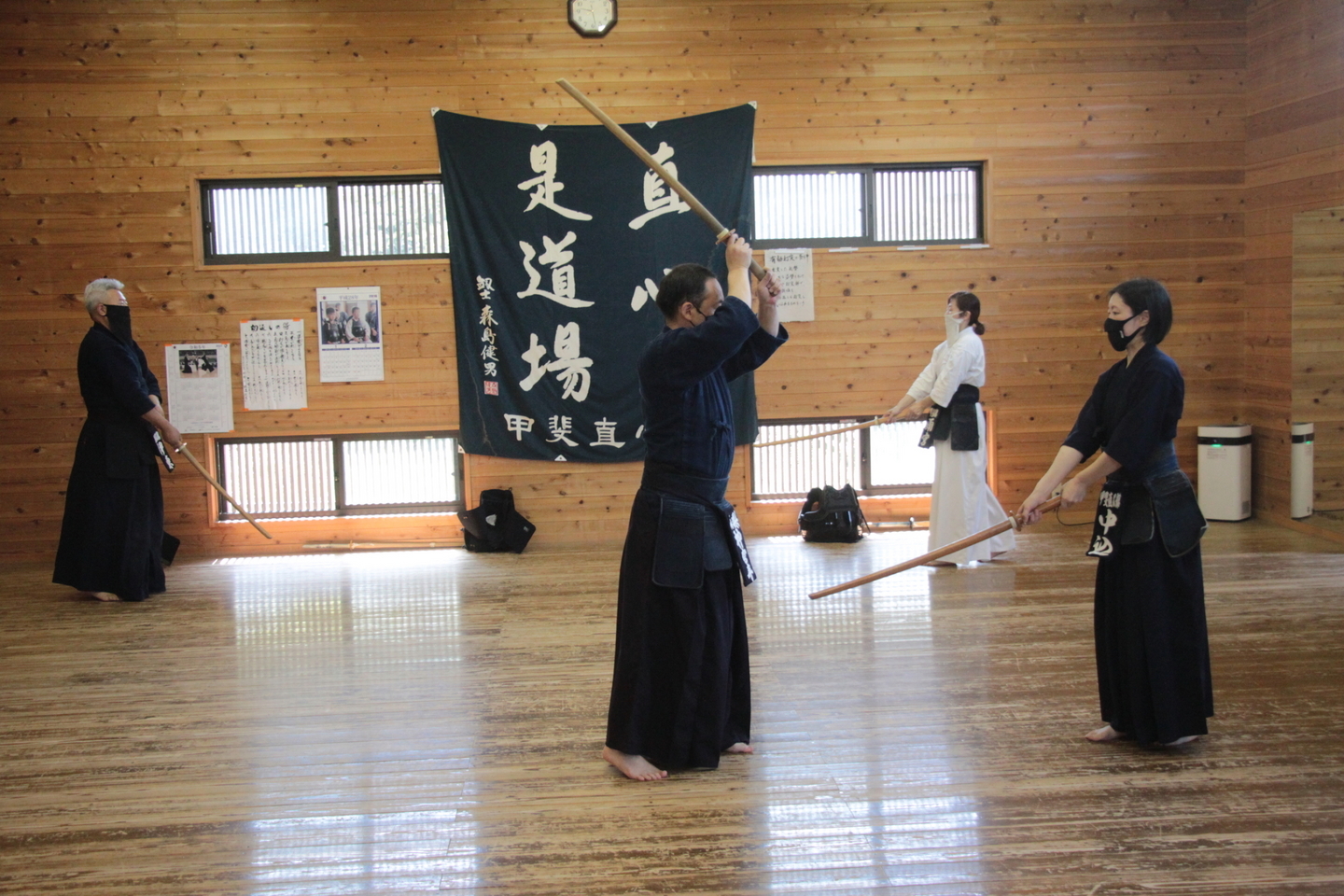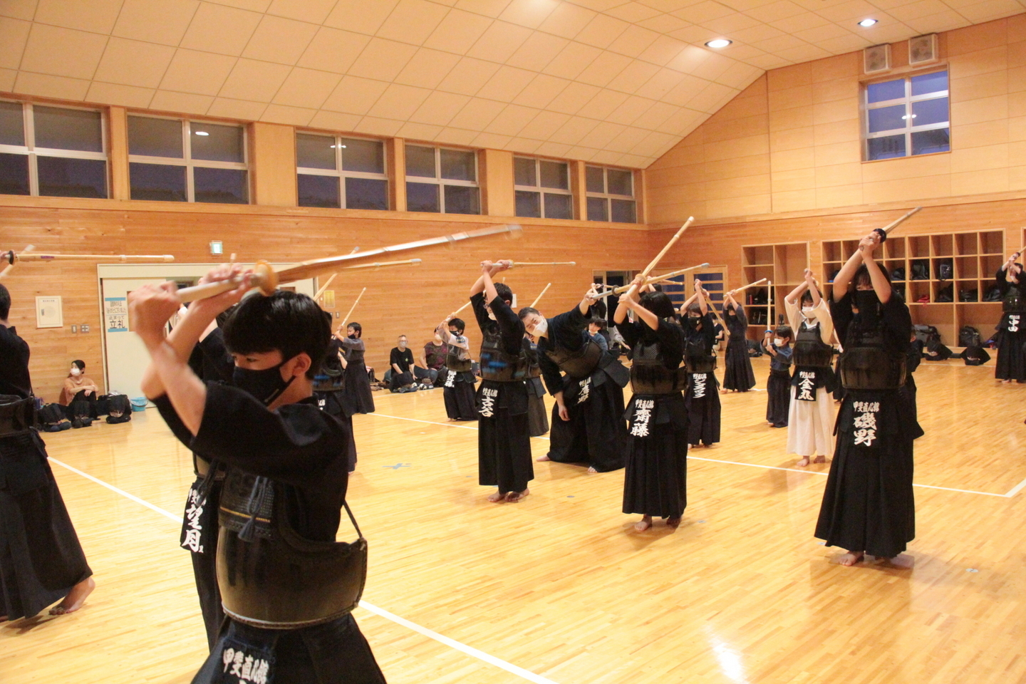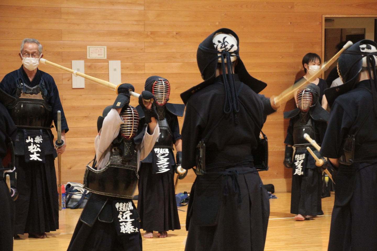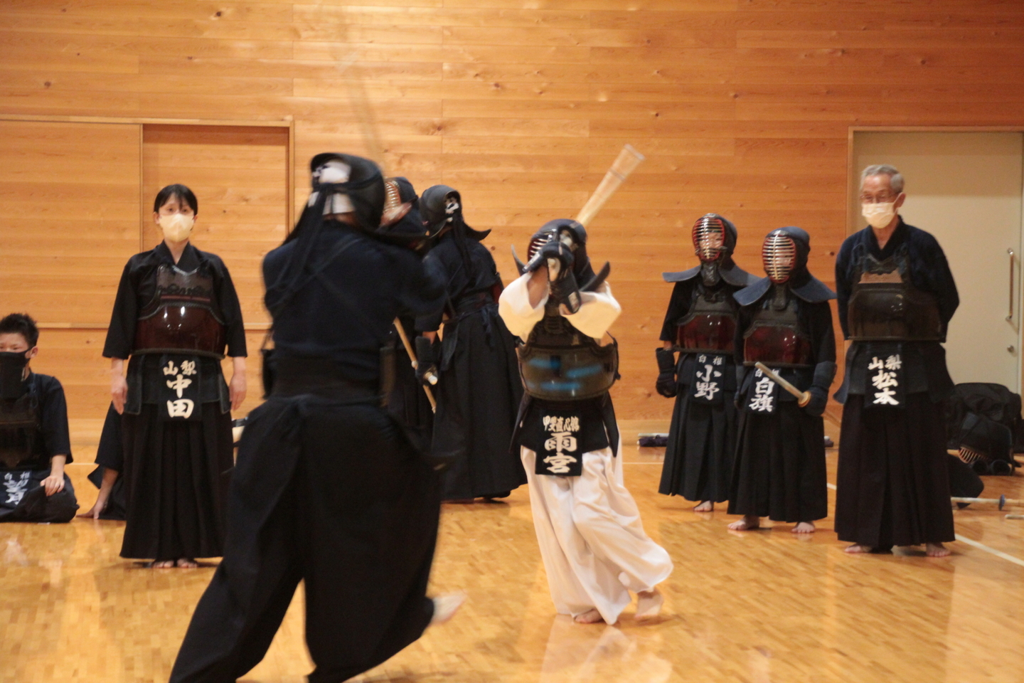 その他の参加者は、中高校生元立ちで松本先生のご指導による打ち込み稽古などをしました。 錬成大会組は白根のメンバーと2試合分を実戦形式で体験することができました。切り返しと打ち込みで差が付くと、その後の1本勝負で追いつくことはできません。甲斐直心館の大会前の稽古はこの日が最終日でしたが、少しでも左右対称の力強い切り返しができるよう、素振りを重ねてほしいと思います。