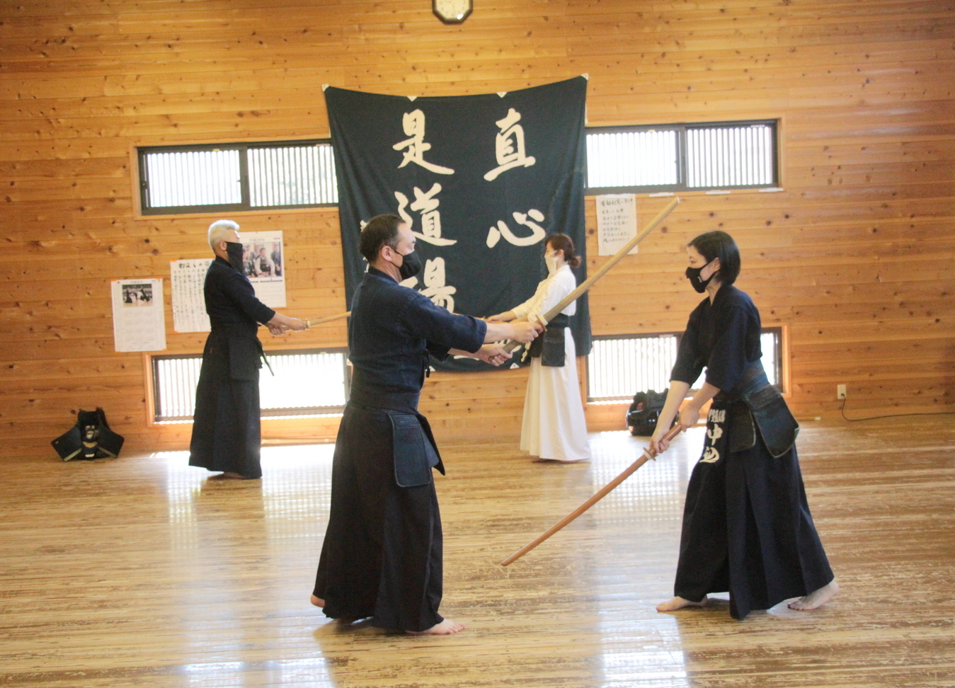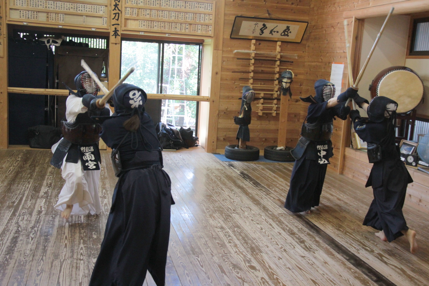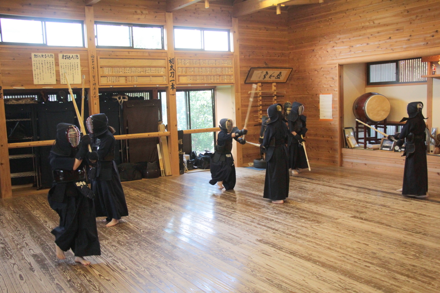 | 7月19日(水)の甲斐直心館稽古は、八田中学校武道場で稽古をしている白根桃源剣友会(松本髣Y代表)に出稽古をお許しいただきました。たっぷり2時間の暑い、熱い稽古をいただきました。