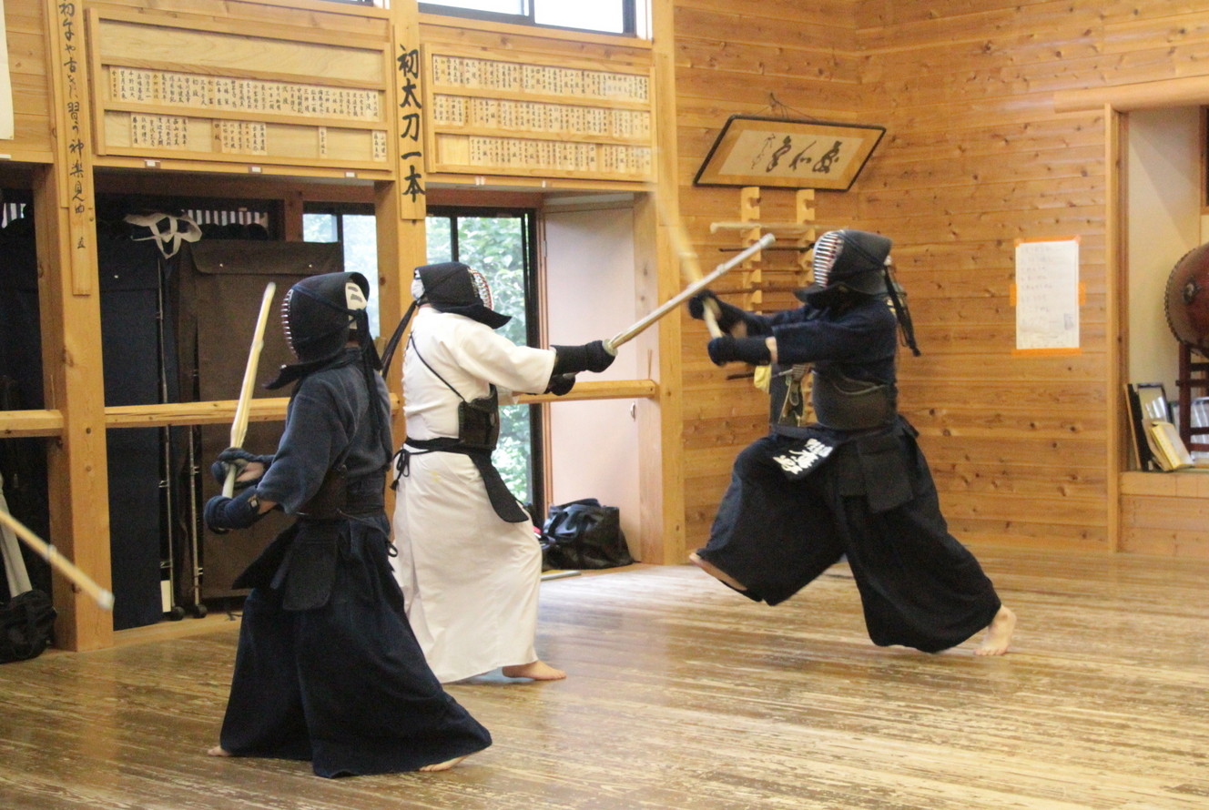 土曜の朝 〜9:00は、道場で朝稽古の残り稽古が可能です。行事等のないときは、土曜または日曜に9:00〜10:00に外部からの参加者も交えて、一般稽古会を行っていますので、ご参加ください。内容は日本剣道形、面を着けての稽古です。