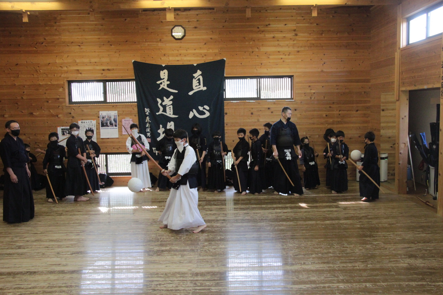 自分に向かってくるバレーボールを踏み込んで面打ち、またドリブルを行いました。少しずつ動きがよくなってきています。