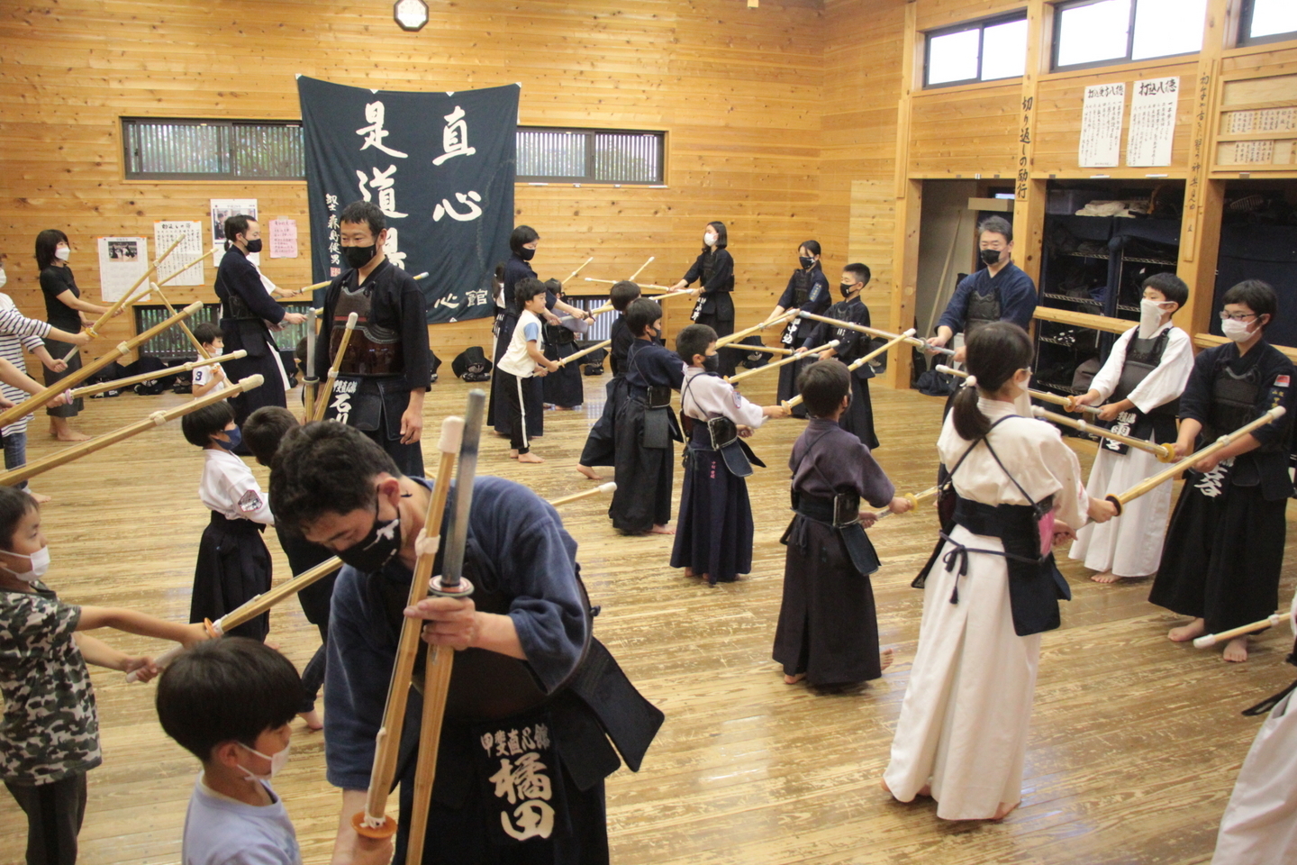 みんなで剣道やろうよ!〜 直心是道場〜 甲斐直心館(Kai-Jikishinkan)山梨県・甲斐直心館(かいじきしんかん)は、「剣の理法の修錬による人間形成の道である」という剣道の理念に近づけるよう修業過程(稽古)を重視しています。「直心是道場(じきしんこれどうじょう)」の旗の下、老若男女が自己の剣道確立に向けて、楽しみながら努力・研究・工夫しています。【稽古1】水曜夜18時50分〜20時15分・玉幡中ほか【稽古2】土曜朝6時〜中学生、7時10分〜小学生以下・甲斐直心館鷹野道場=甲斐市篠原3218-2【一般稽古会】土曜朝9時〜10時甲斐直心館鷹野道場=お問い合わせはchirochiro1965(a)yahoo.co.jpへお願いいたします。(a)は@に打ち直してください。
