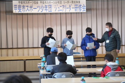 | 甲斐直心館の水曜通常稽古を1月25日、午後7時から、玉幡中学校体育館で行いました。この日は冬型の気圧配置が強まり、甲府で最低気温が氷点下5.2度、日中の最高気温も1.9度という寒い一日でした。体育館の床も冷たい状況です。参加者は43人でやや少なめでした。