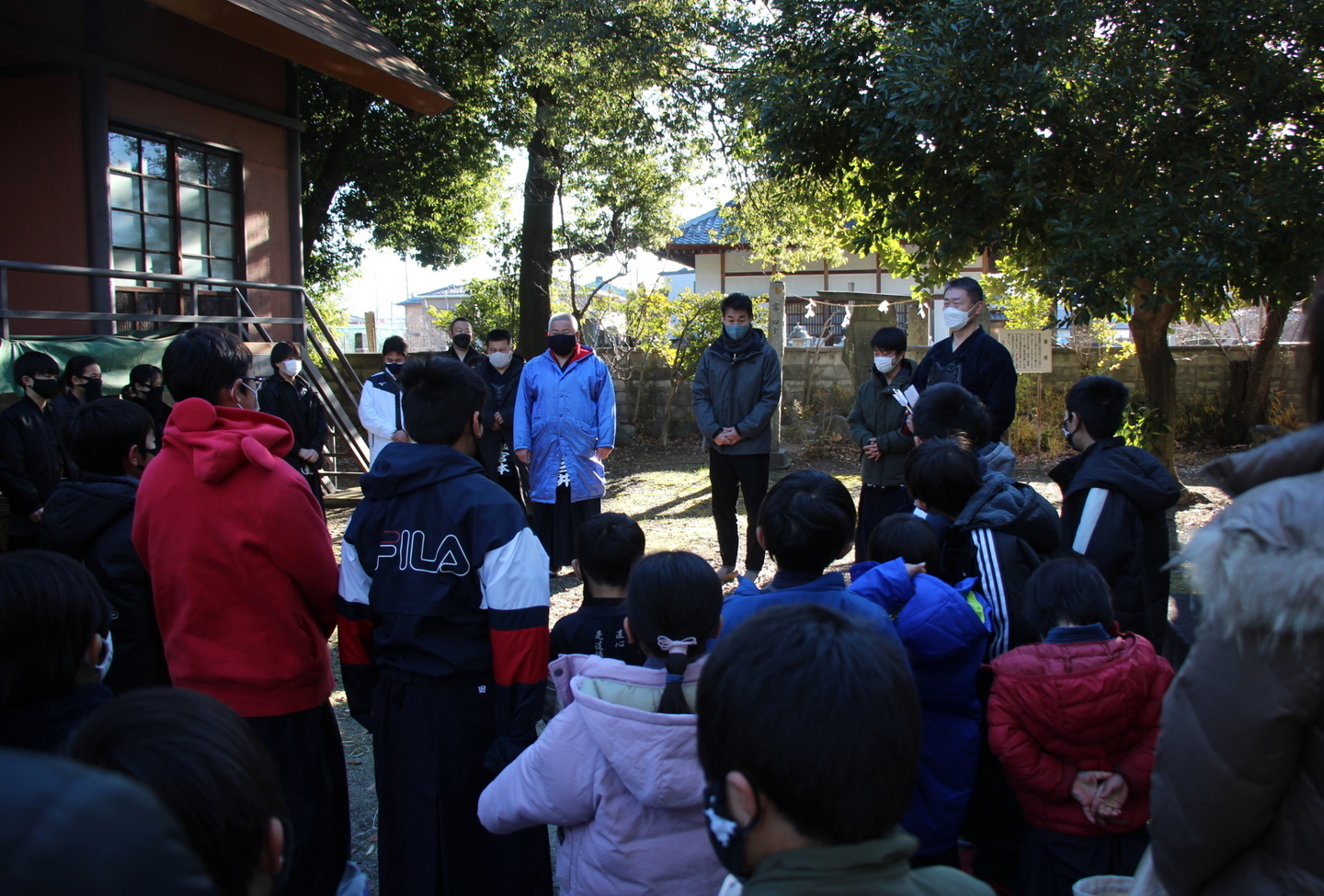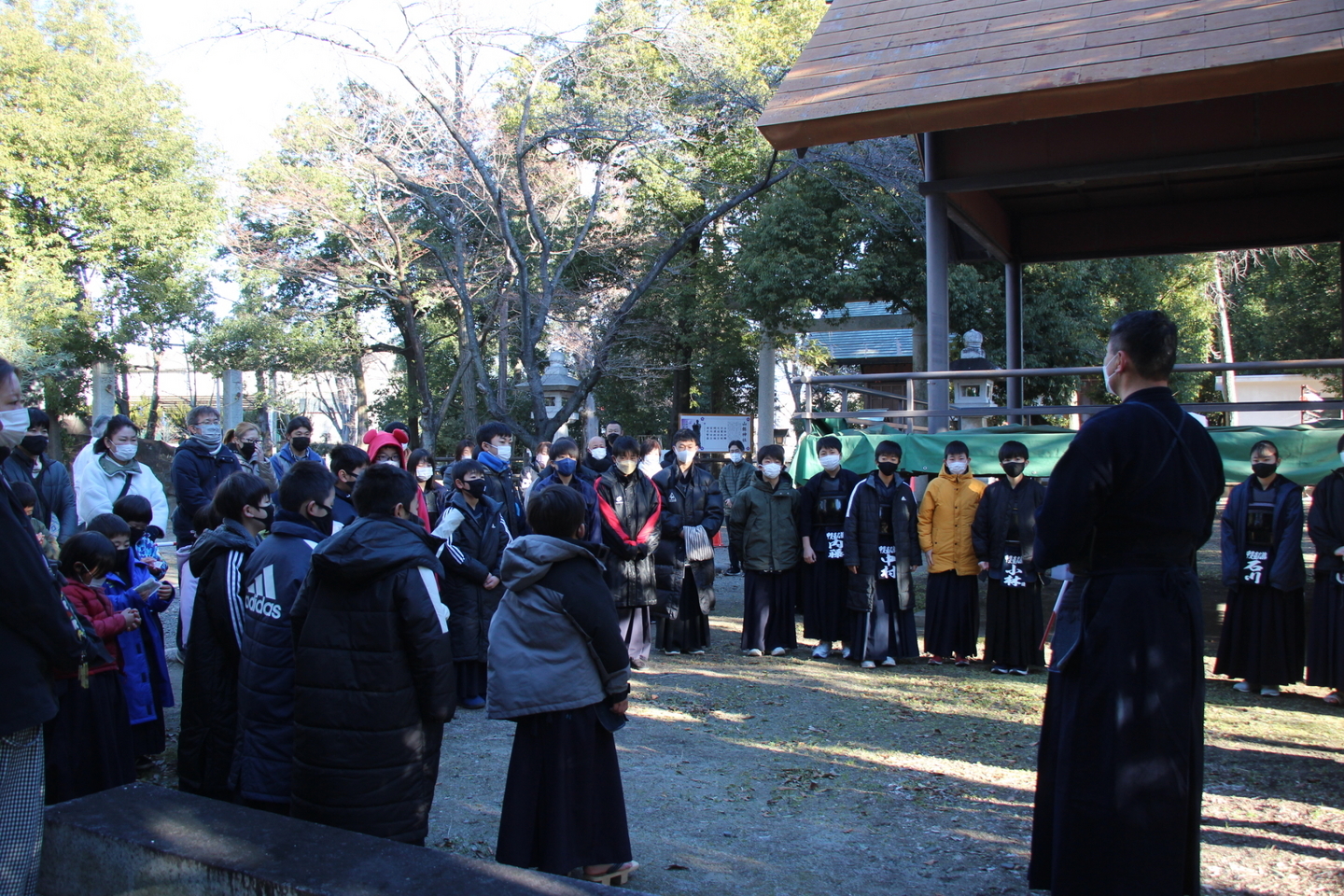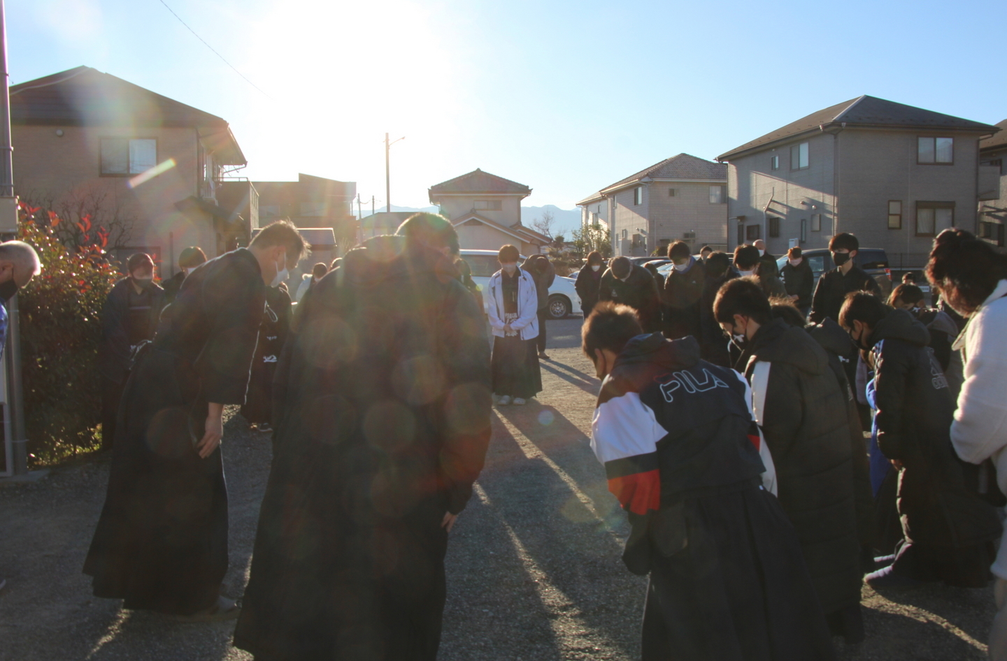 | 甲斐直心館道場の元旦稽古会を開いたところ、大勢の参加をいただき、1時間の集中した稽古を行うことができました。午前10時からという、太陽も高く昇っている時間ですが、「元旦」稽古ということで毎年おこなっています。