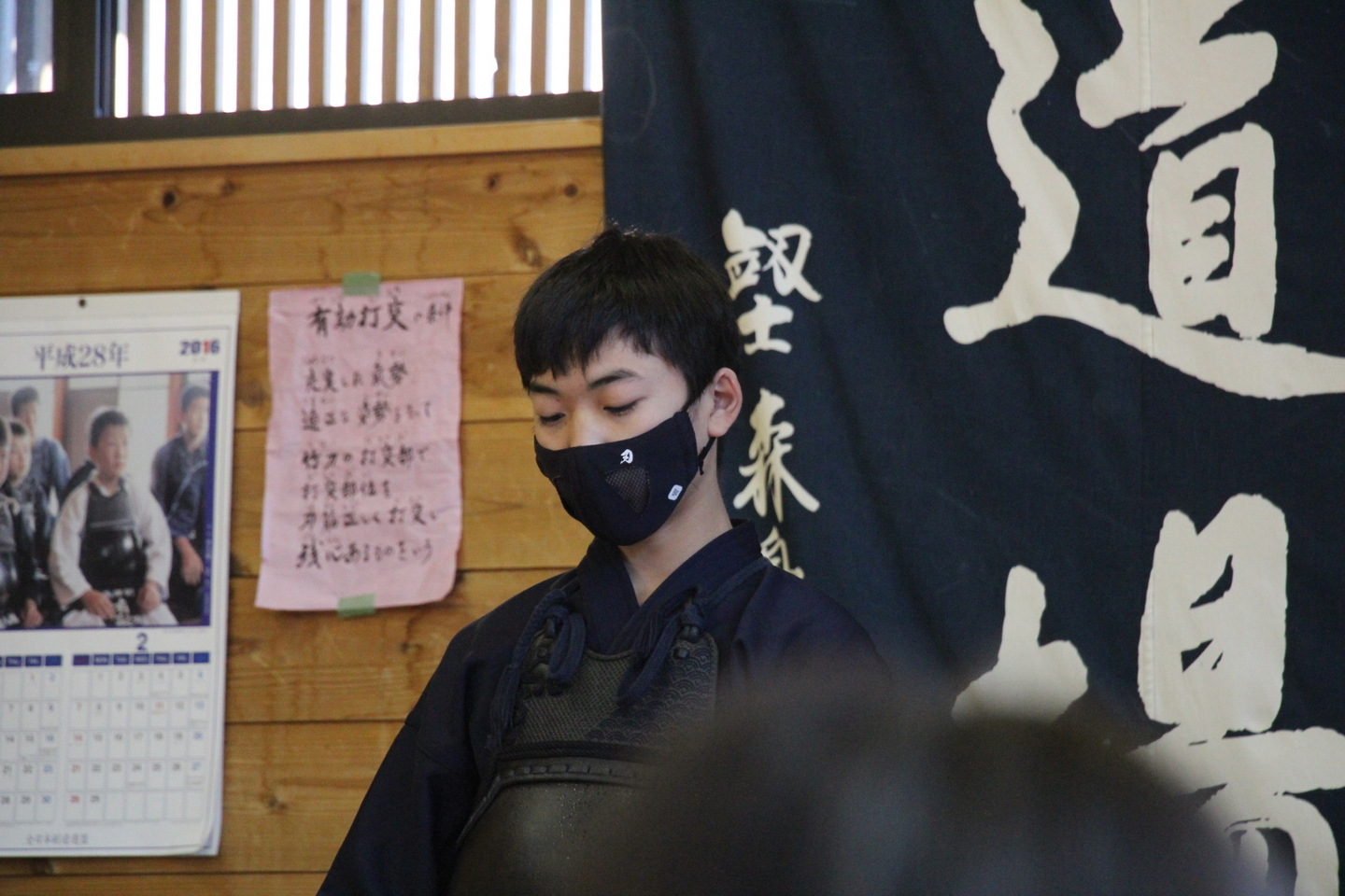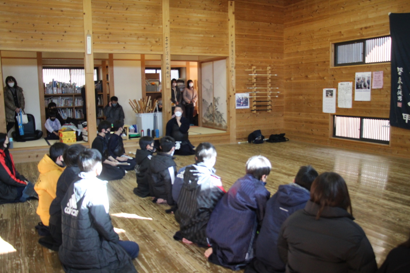中3長谷部君の号令で正座。館長から年頭あいさつの後、塩釜先生、有泉先生からもお言葉をいただきました。