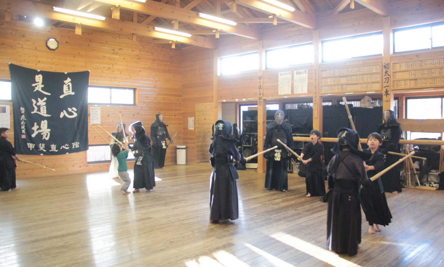 みんなで剣道やろうよ!〜 直心是道場〜 甲斐直心館(Kai-Jikishinkan)山梨県・甲斐直心館(かいじきしんかん)は、「剣の理法の修錬による人間形成の道である」という剣道の理念に近づけるよう修業過程(稽古)を重視しています。「直心是道場(じきしんこれどうじょう)」の旗の下、老若男女が自己の剣道確立に向けて、楽しみながら努力・研究・工夫しています。【稽古1】水曜夜18時50分〜20時15分・玉幡中ほか【稽古2】土曜朝6時〜中学生、7時10分〜小学生以下・甲斐直心館鷹野道場=甲斐市篠原3218-2【一般稽古会】土曜朝9時〜10時甲斐直心館鷹野道場=お問い合わせはchirochiro1965(a)yahoo.co.jpへお願いいたします。(a)は@に打ち直してください。