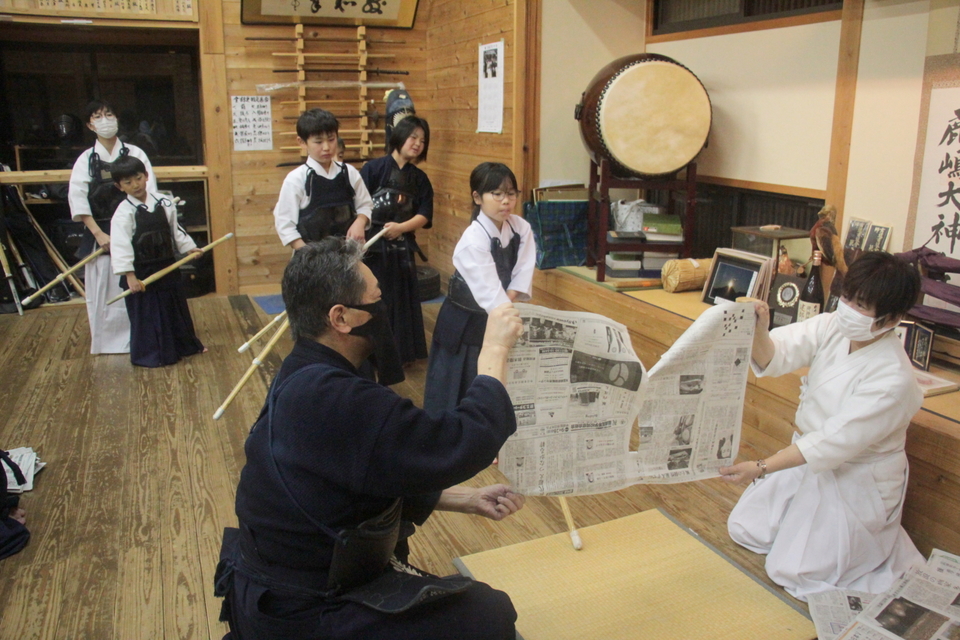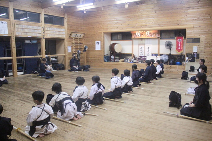 甲斐直心館の団員、一般の皆さんは剣道具持参で