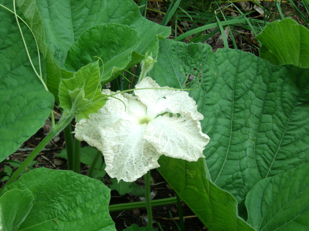昨年庭先に捨てたユウガオの種が活着し旺盛に成長