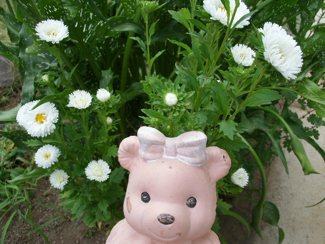 こぼれ種で咲いたアスターは、お供えできそうです。