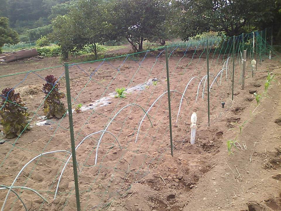 ネットのまわりにトンネル用のしちゅうもせっち!