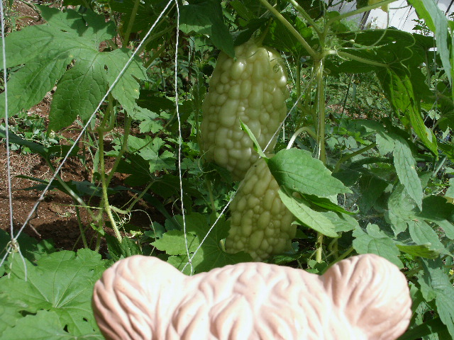 葉っぱのかげだけど、これ、白ゴーヤです。