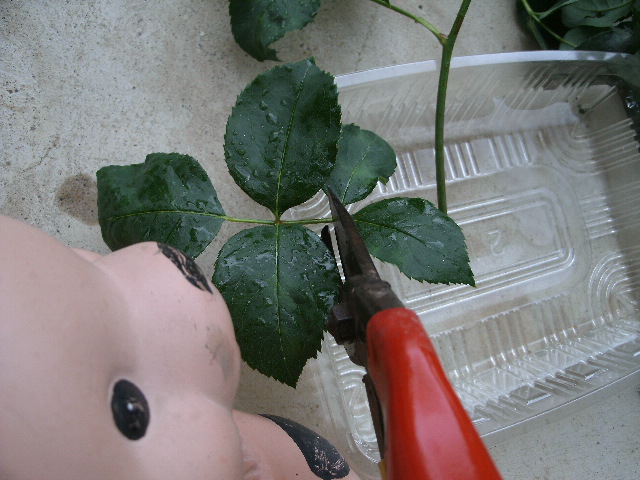 枝・・・5枚葉を2,3枚つけた枝に切る。