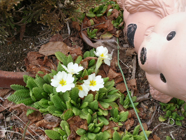 ず〜っとうえっぱなしのプリムラジュリアンも、冬に一回かれて茶色くなって、でも春になったから小さい葉っぱ出して、花もさいてる