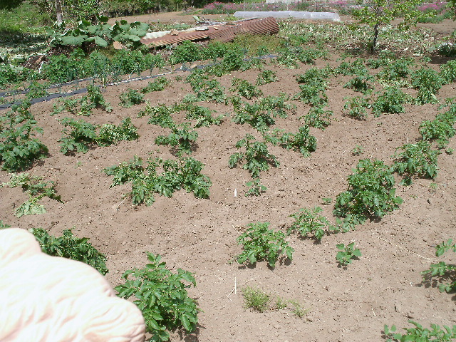 じゃがいもはまだできないし、にんじんも葉っぱが出てきたばっかりだから、スーパーでかってきた。