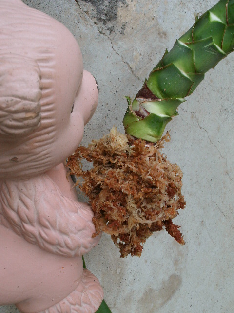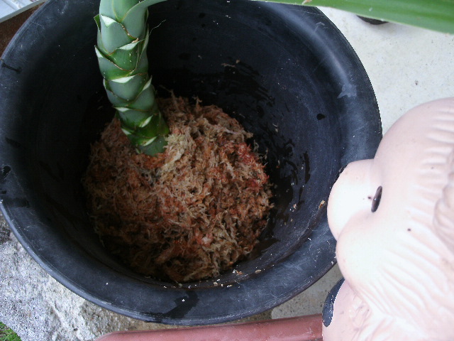 幹に水苔を巻きつけて、鉢の中も水苔を敷いて。これでヨシ