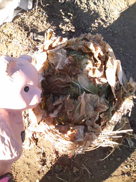 で、今日もはくさい食べようとおもって、はたけ行ったの。