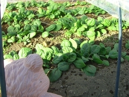 秋にまいたハウスじゃないほうれん草の葉っぱはきいろくなっちゃってるけど、