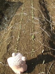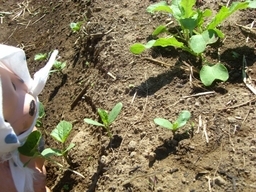 3つぶずつまいた かぶちゃんが大きくなってきたので、