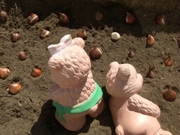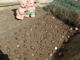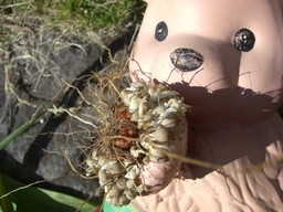 球根のまわりの小さいつぶつぶは、球根のように植えておくと忘れた頃に芽を出すわ。