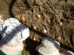 カノジョといっしょにチューリップのきゅうこん うえたよ